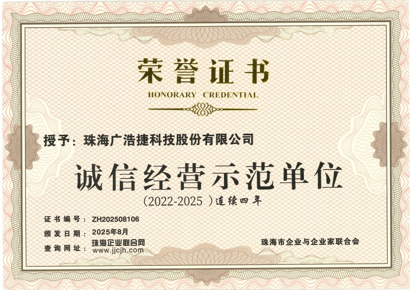 单位名称:珠海广浩捷科技股份有限公司