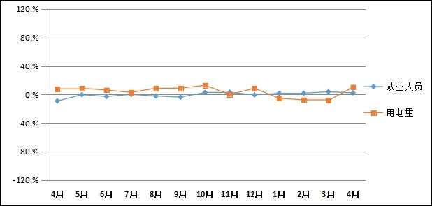(一)用电量和企业用工:1-4月份用电量同比上涨10.24%;期未借款余额同比下降3.11%;从业人员同比上涨2.31%。