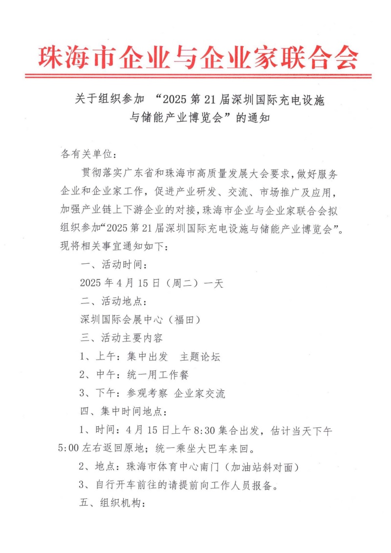 关于组织参加“2025第21届深圳国际充电设施与储能产业博览会”的通知