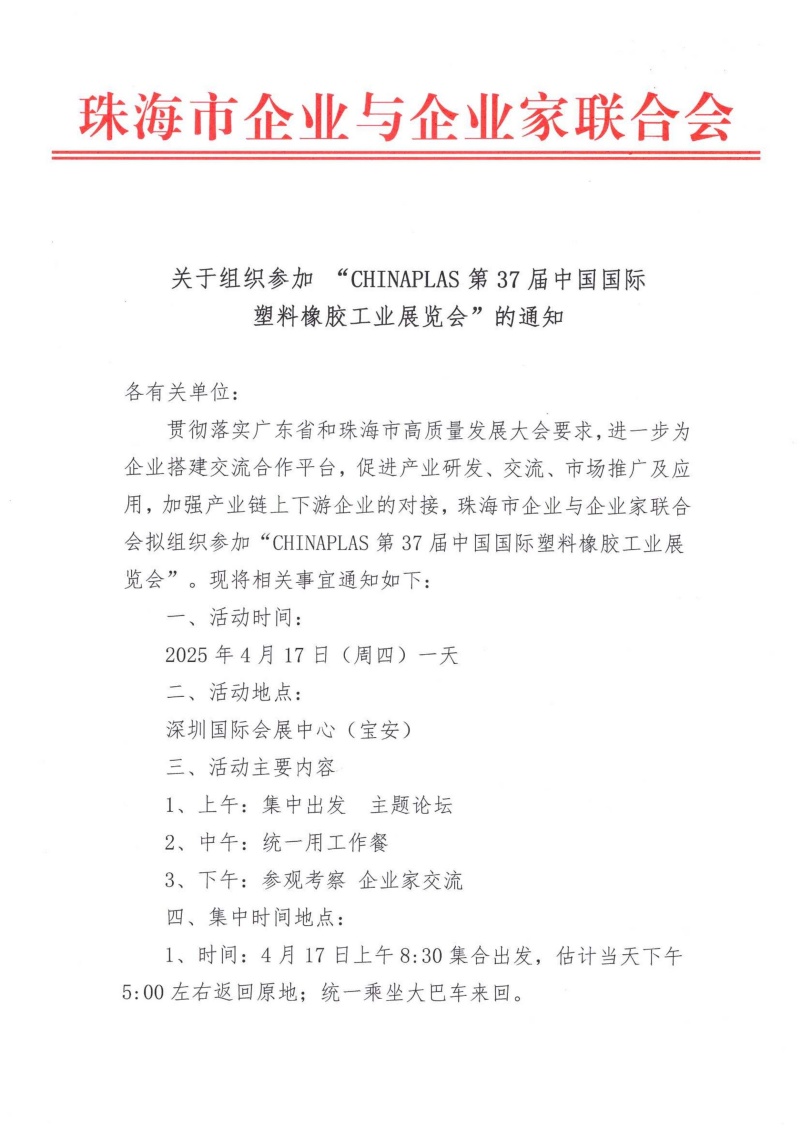 关于组织参加“CHINAPLAS第37届中国国际塑料橡胶工业展览会”的通知