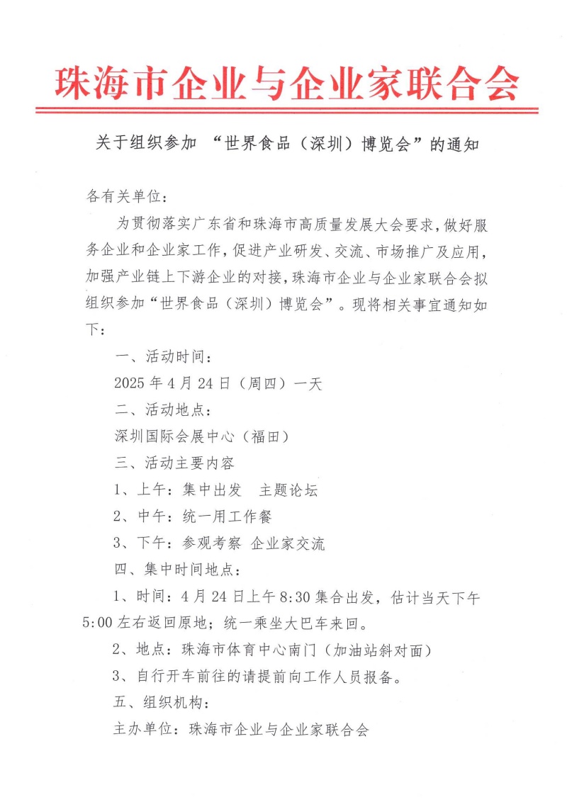关于组织参加“世界食品(深圳)博览会”的通知