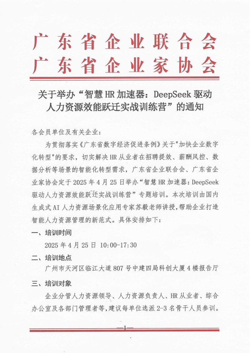关于举办“智慧HR 加速器:DeepSeek驱动 人力资源效能跃迁实战训练营”的通知