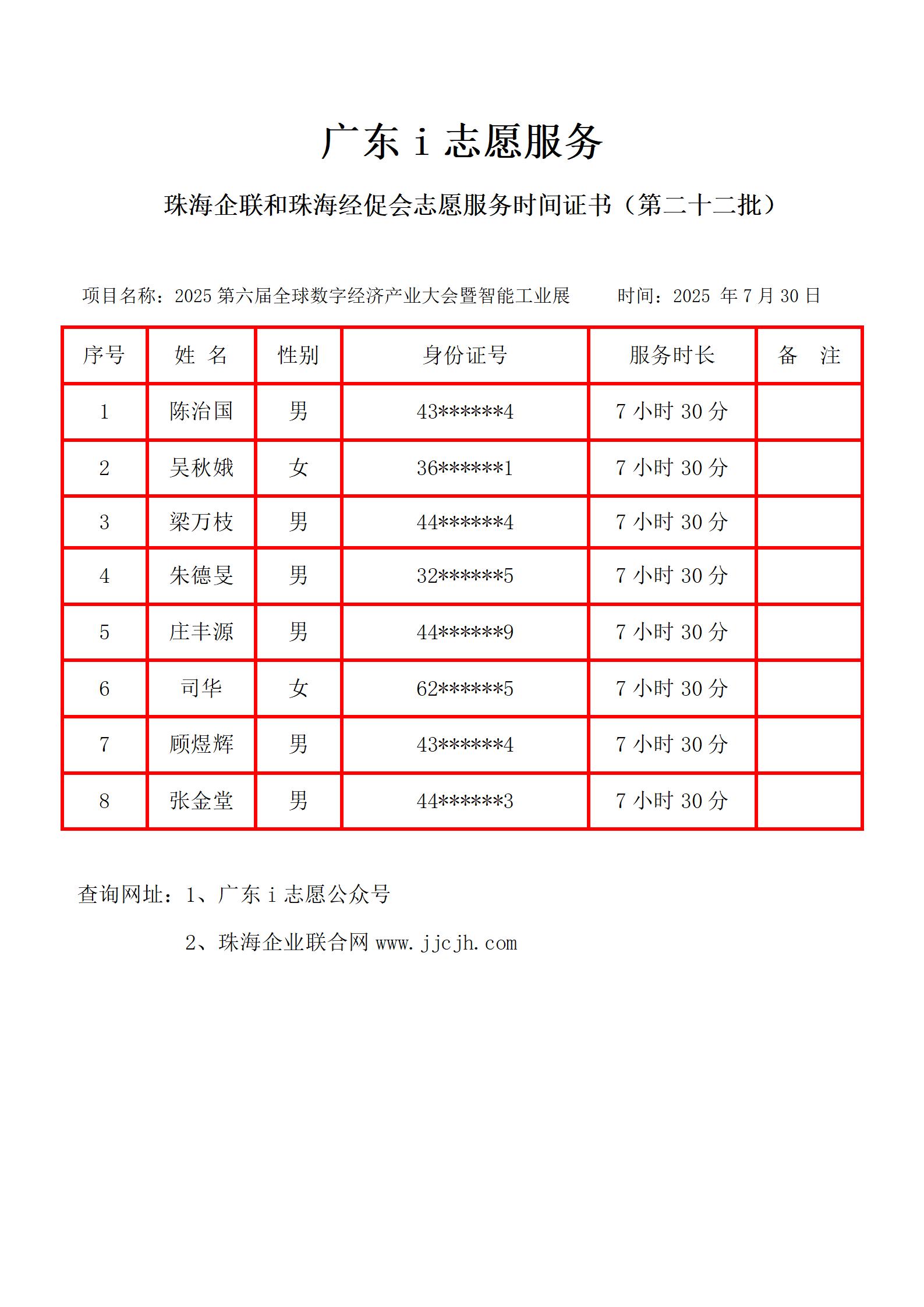 广东i志愿服务 珠海企联和珠海经促会志愿服务时间证书(第二十二批)