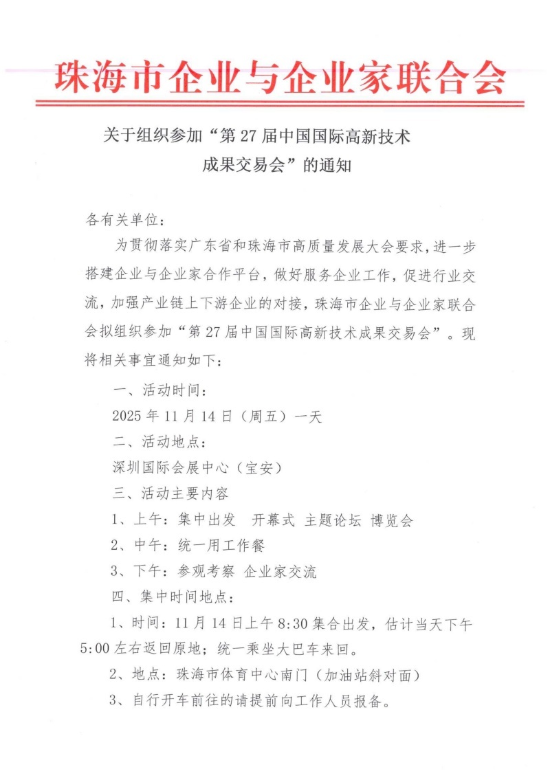 - [2025-10-29]关于组织参加“第27届中国国际高新技术成果交易会”的通知