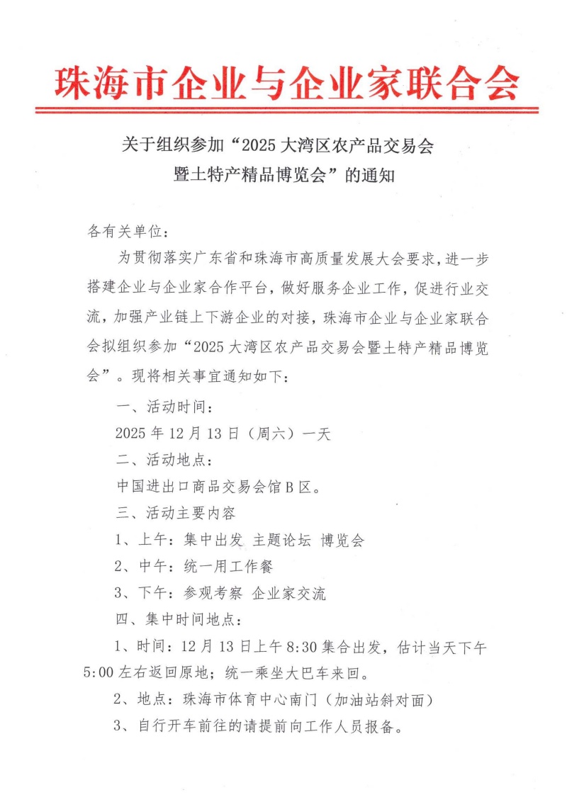 - [2025-12-08]关于组织参加“2025大湾区农产品交易会暨土特产精品博览会”的通知