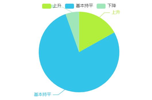 (六)原材料购入价格与上月相比:本月,原材料购入价格与上月相比:上升的有56家,占比16.92%;基本持平的有257家,占比77.64%;下降的有18家,占比5.44%。