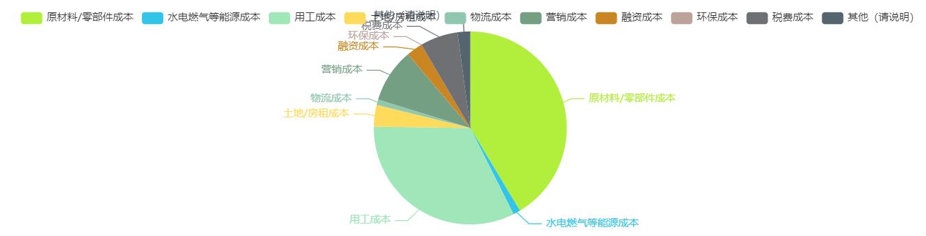 (十九)当前企业最大的成本压力来自(单选):原材料/零部件成本有137家,占比41.39%;水电燃气等能源成本有4家,占比1.21%;用工成本有108家,占比32.63%;土地/房租成本有12家,占比3.63%;物流成本有3家,占比0.91%;营销成本有30家,占比9.06%;融资成本有9家,占比2.72%;税费成本有21家,占比6.34%;其他(请说明)有7家,占比2.11%。