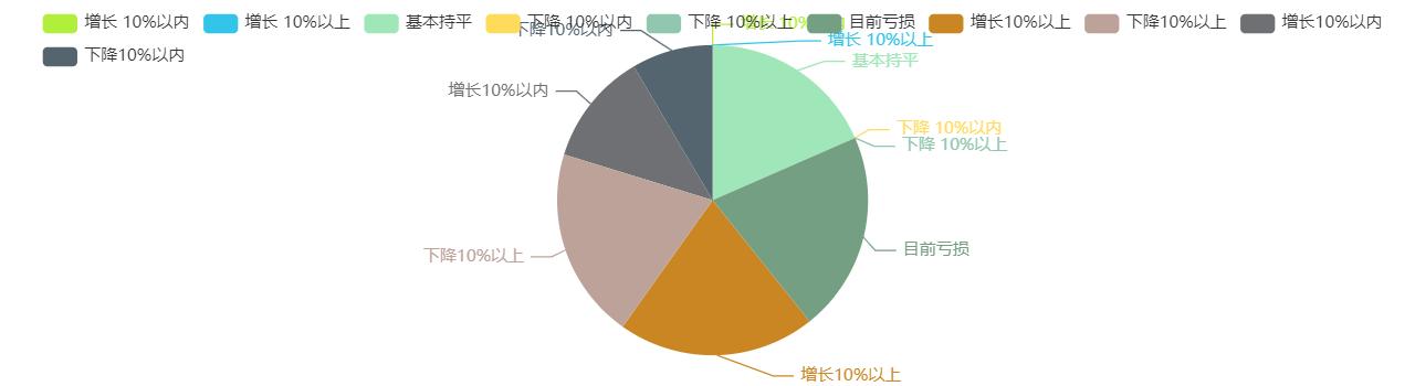 (十五)企业利润:今年以来,企业利润总额(年初至本月累计值)与上年同期相比:基本持平有61家,占比18.43%;增长10%以内有39家,占比11.78%;增长10%以上有68家,占比20.54%;下降10%以内的有28家,占比8.46%;下降10%以上有66家,占比19.94%;目前亏损有69家,占比20.85%。