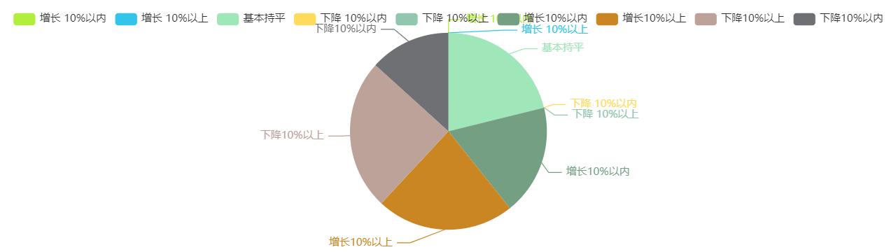 (十四)销售收入:今年以来,企业销售收入(年初至本月累计值)与上年同期相比:基本持平有70家,占比21.15%;增长10%以内有60家,占比18.13%;增长10%以上有75家,占比22.66%;下降10%以内有44家,占比13.29%;下降10%以上有82家,占比24.77%。