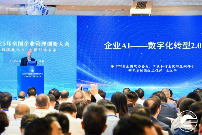 王江平在讲话中围绕“企业AI——数字化转型2.0”主题,分析了近期AI领域的最新变化,指出以DeepSeek为代表的开源模型,性能接近顶尖闭源模型;大模型推理成本迅速下降,小模型性能迅速提升,AI正变得更高效、更普惠。从厚植企业竞争力的角度看,AI驱动的“数据+算法”创新体系正在取代传统的线性创新方式,大幅度提高企业研发设计能力和技术迭代速度;企业通过AI技术推动生产要素更加集约化,从而全面提升要素效率;通过AI技术构建“感知-预测-决策”的智能响应体系,形成敏捷供应链;通过AI技术分析用户行为,构建360°画像,形成个性化服务,不断提高用户粘性。他提出,AI时代的管理变革突出体现在组织结构重塑、决策模式调整、人事管理转型和领导力进化等方面。企业AI是大势所趋,是人工智能时代企业重塑竞争力的必然选择。把企业AI视为数字化转型2.0,是对过往信息化、数字化、智能化工作的继承与发展。