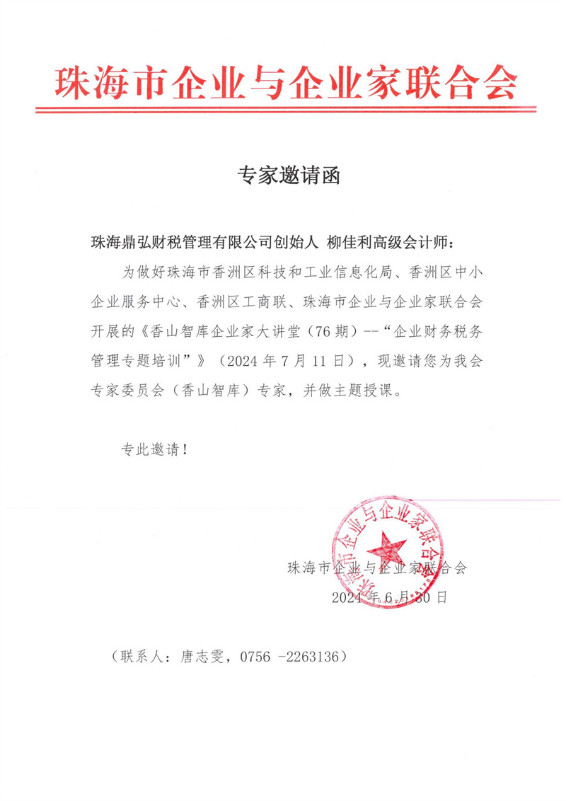 - [2024-06-30]【 专 家 】柳佳利 珠海鼎弘财税管理有限公司
